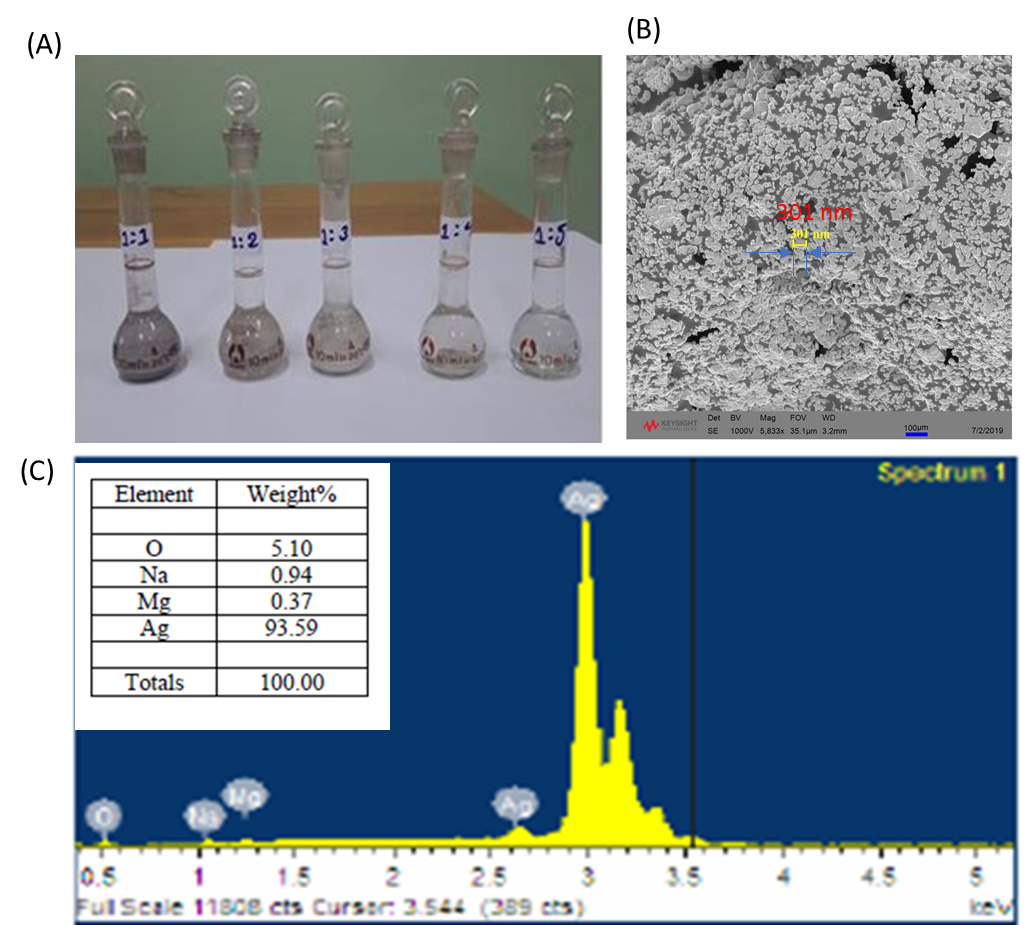 Silver nitrate (AgNO3, A.C.S. reagent) and sodium acetate (C2H3NaO2) were purchased from Loborat Fine Chemical Ltd.India. Ammonium Solution (NH3) and Formic Acid (CH2O2) were purchased from Qualikems Fine ChemPvt. Ltd.India. All chemical reagents were analytically pure, and no further purification was made. Deionized water (DI) was used during the whole experimental process.